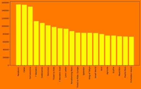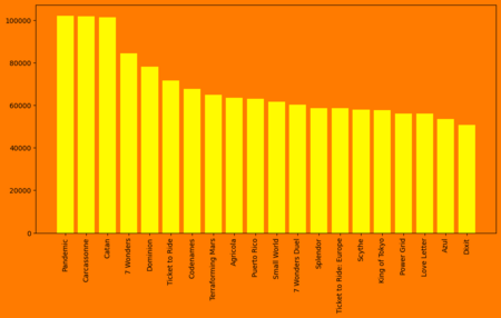 Диаграмма с одной стороны оказалась ожидаемой, так как большая часть игр являются одними из самых популярных, но меня удивило то, что многих настолок, которые больше остальных на слуху, вроде Монополии, там не оказалась.