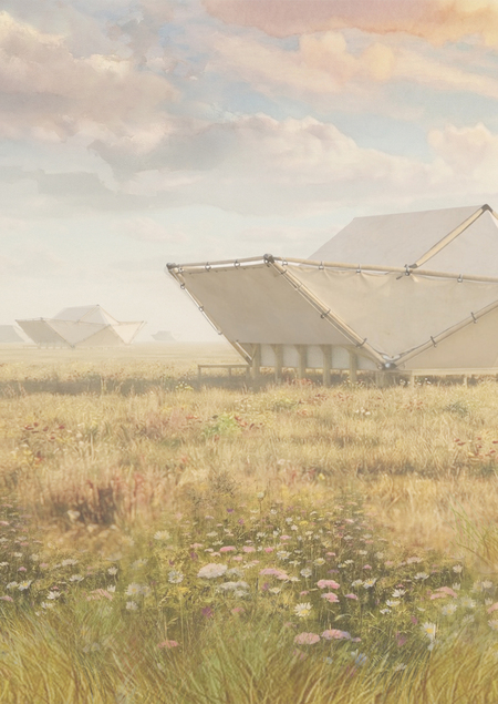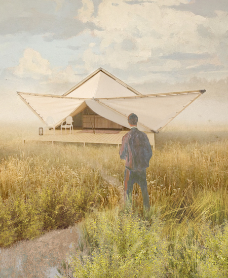 Образ бумажного кораблика символизирует творческий полет мысли, в его немного даже детском, свободном проявлнии. Это идеальная форма, отражающая философию всей резиденции. Бумажные кораблики поплывут по полю, как по морю, по направлению к другим просторам: площкам, где проводятся фестивали.