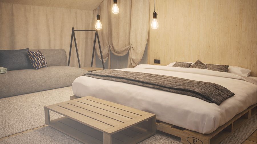 В общем корпусе располагается ресепшен, столовая и небольшой лаундж-бар для вечернего отдыха. Плоская крыша используется для размещения солнечных батарей для осуществления независимости отеля от города.