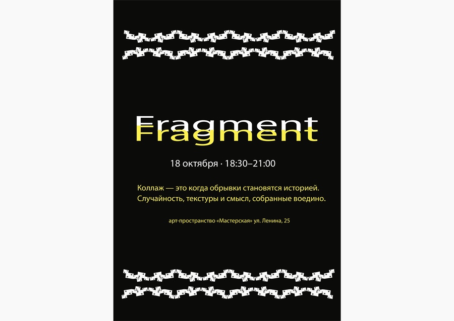 «Будь.» — манифест Основа проекта. Вечеринка как пространство свободы и живого общения без статуса и формальностей. «кинофестик.» Камерные кинопоказы как повод регулярно встречаться, смотреть и разговаривать вместе. «free for sale» Арт-ярмарка без пафоса, где искусство доступно, а ценность важнее цены. «fragment» Предмет, как приглашение к коллажному мышлению и личному высказыванию.