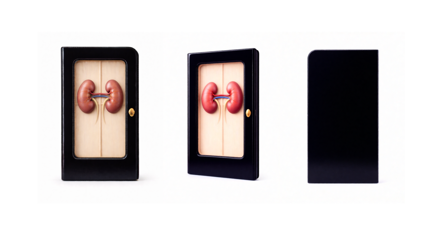 Серия представляет внутренние органы как изолированные объекты, помещённые в закрытую рамку, напоминающую витрину или шкаф. Органы оказываются выставленными напоказ, но при этом отделёнными от зрителя прозрачной и жёсткой границей.