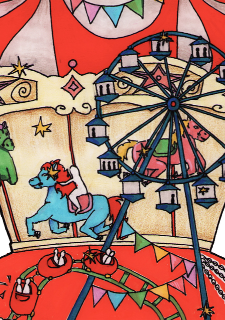 У многих парк аттрационов ассоциируется с яркими воспоминаниями из детства, наполненными счастьем и беззаботностью. Именно поэтому я беру изображение именно этого места — оно яркое и запоминающееся, через него можно глубоко раскрыть тему человек-город и отобразить различные грани вышеупомянутого образа: дневной, ночной, страшный и так далее. В своем проекте я показываю вариативность изображения парка аттракционов, в каждом человечке присутствует уникальный сюжет и особая атмосфера, которую я хочу передать зрителю.