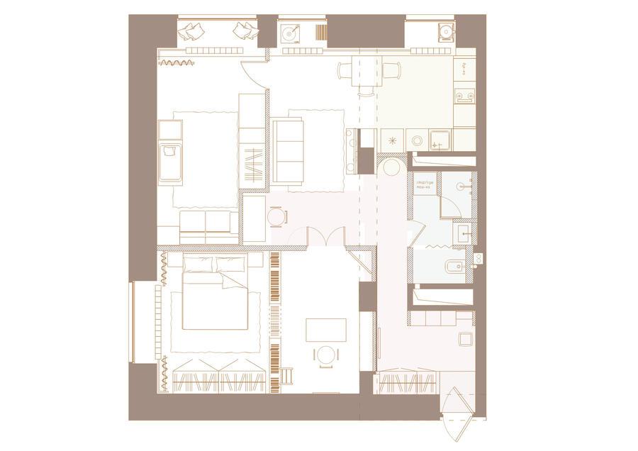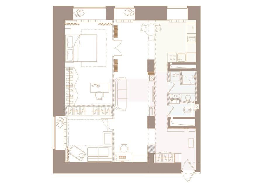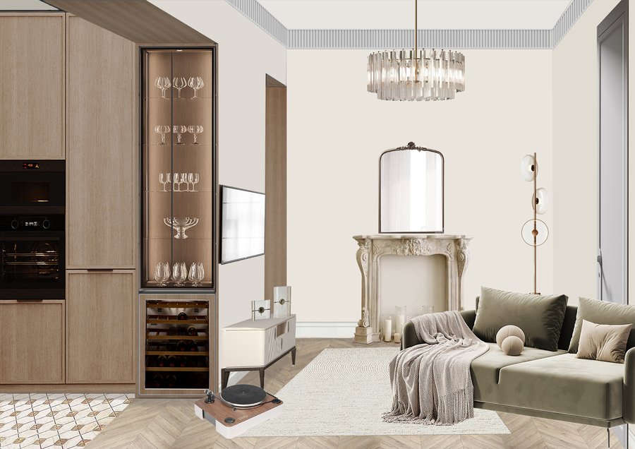 Интерьер создавался для молодой пары. Она журналист, он работает в IT сфере. Семья любит проводить время дома, они предпочитают уют и много света. Работают удаленно. Интерьеры предпочитают светлые, с интересными деталями в декоре и аксессуарах, любят винтаж. Одним из основных пожеланий было объединение кухни и смежной комнаты для органbзации просторной кухни-гостиной, от этого мы отталкивались при разработке планировочных решений.