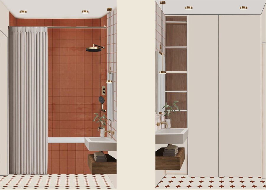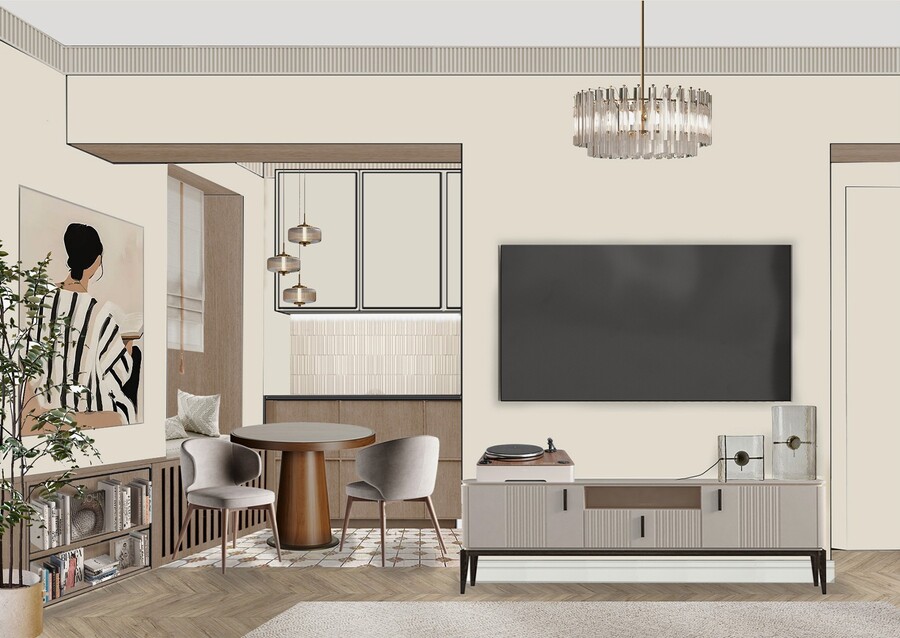 Следующим этапом проектирования стала разработка 3D-визуализаций, с помощью которых был уточнен подбор материалов, пропорции элементов интерьера и цветовое решение.