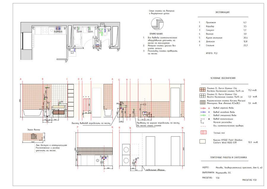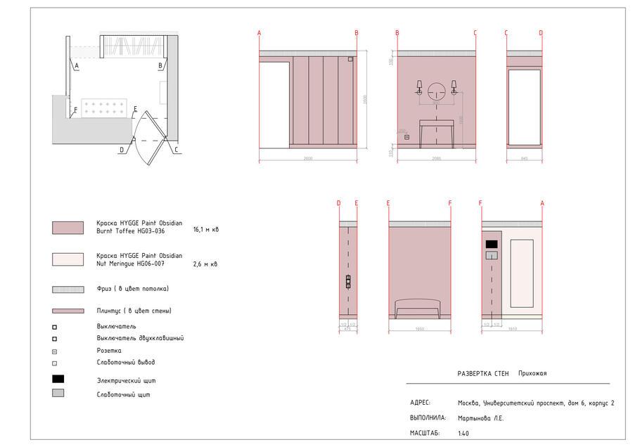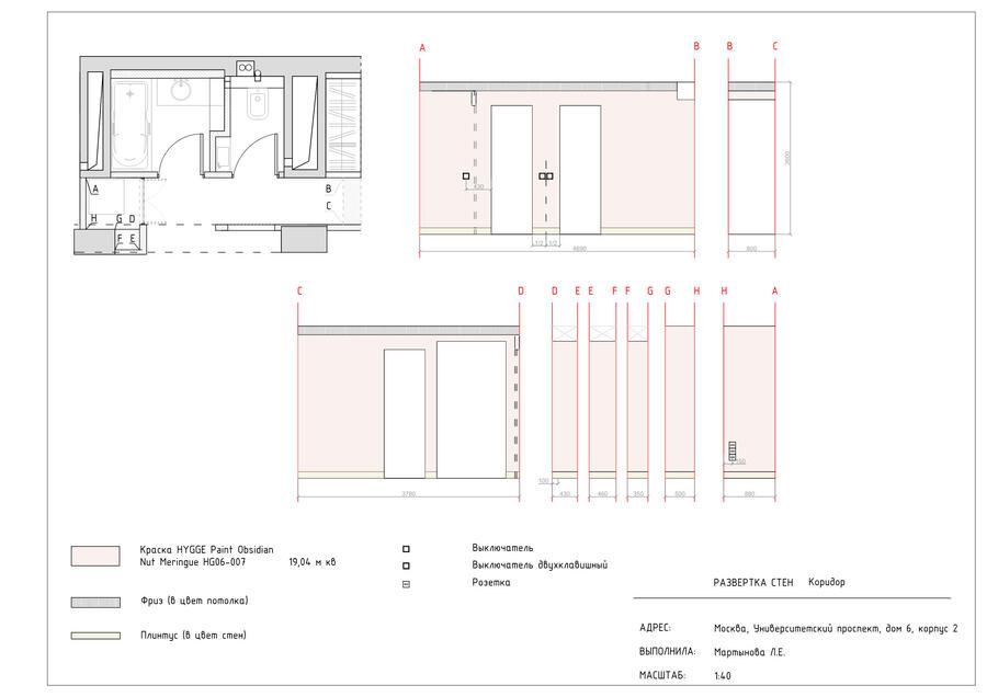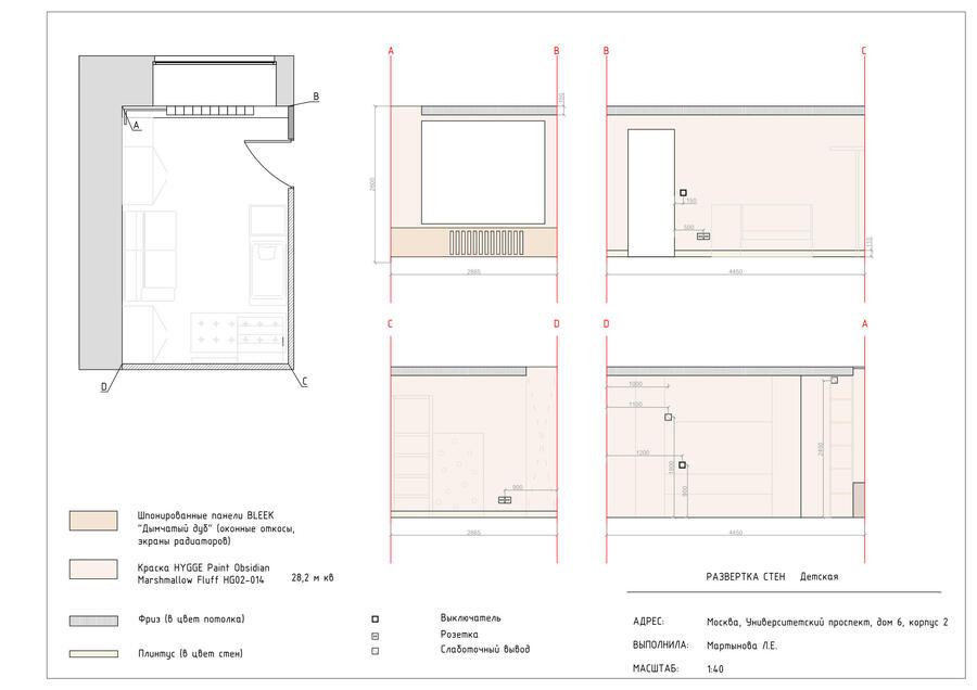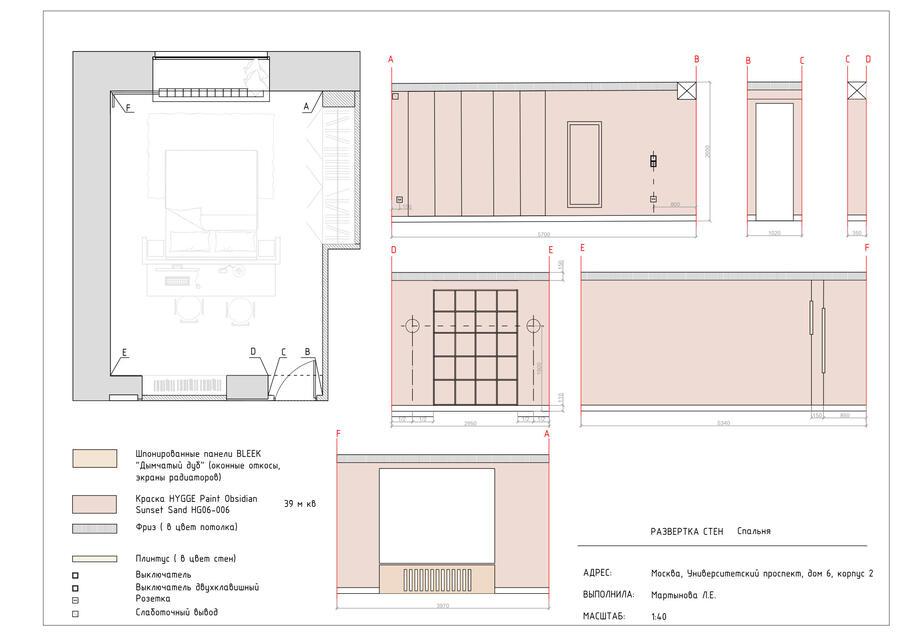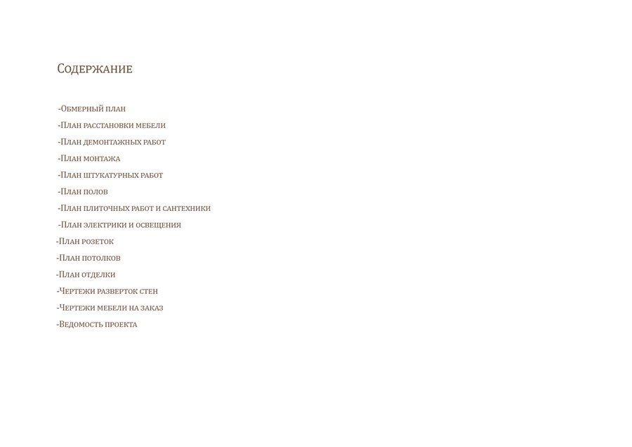 Проект сопровождается комплектом чертежной документации и разверток, а также ведомостью отделочных материалов, мебели и техники.