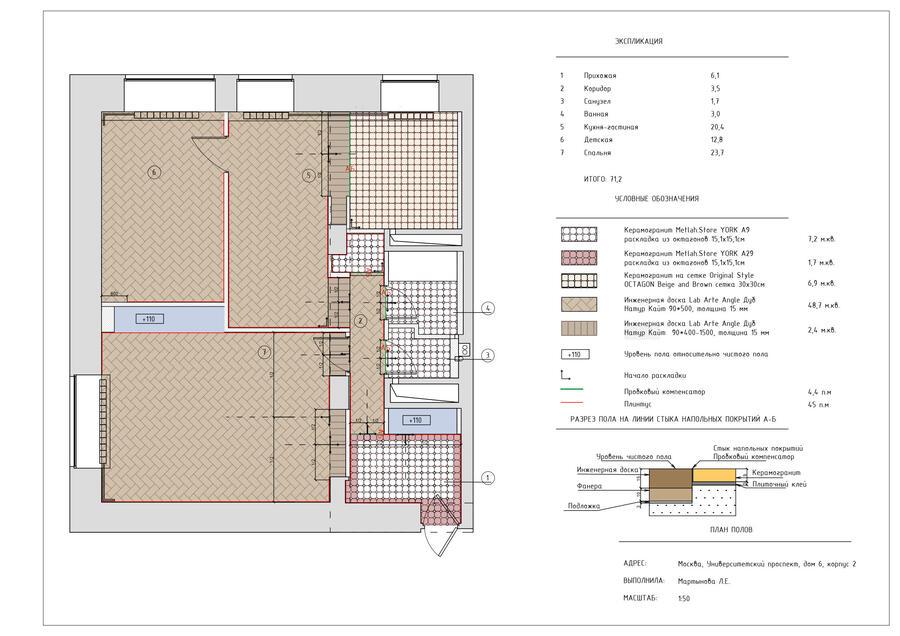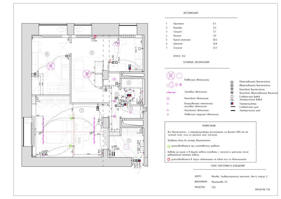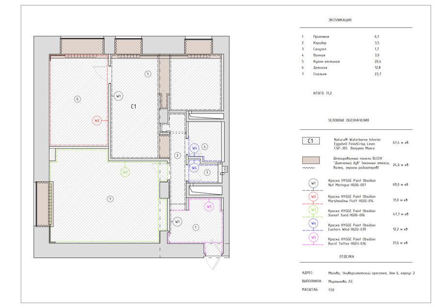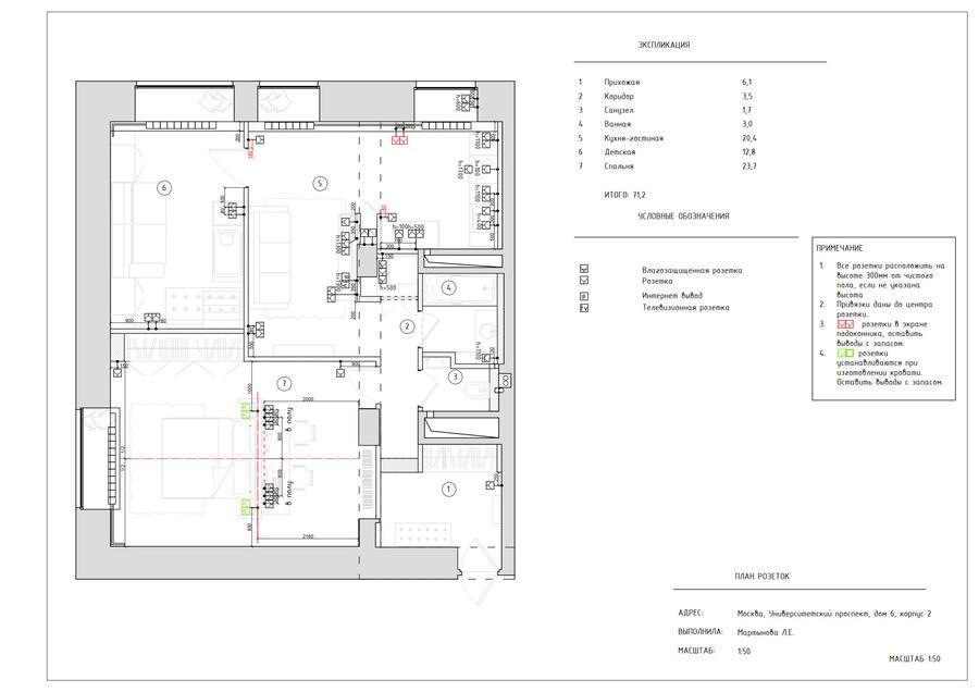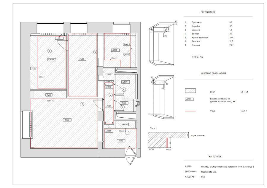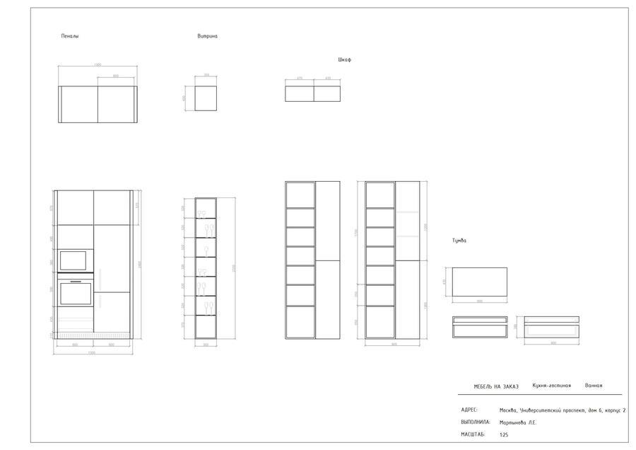 Проект сопровождается комплектом чертежной документации и разверток, а также ведомостью отделочных материалов, мебели и техники.