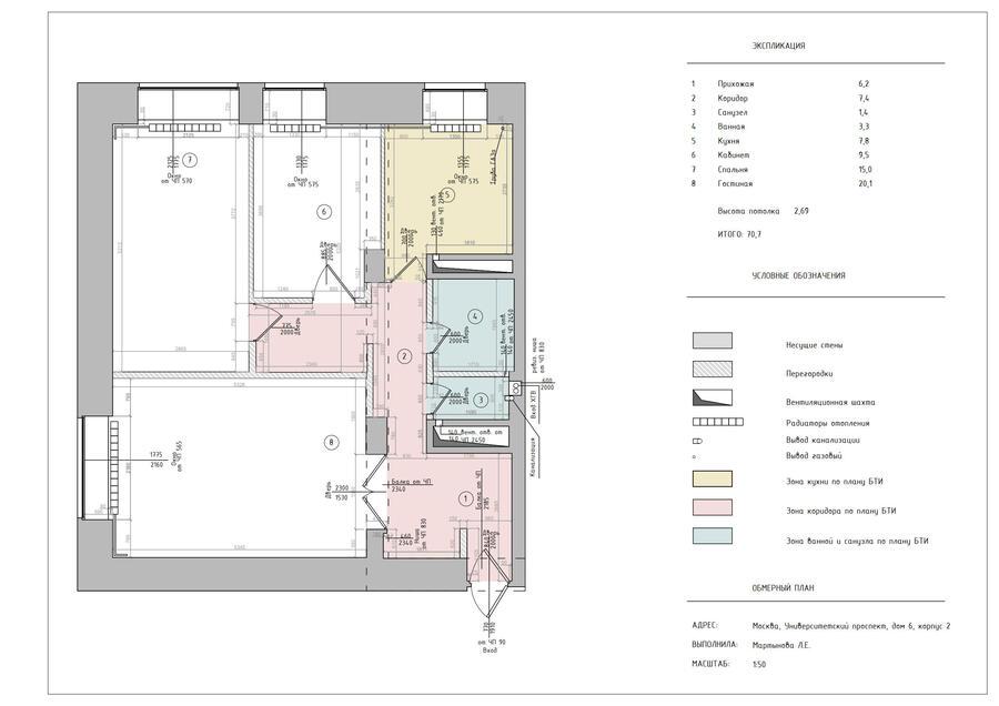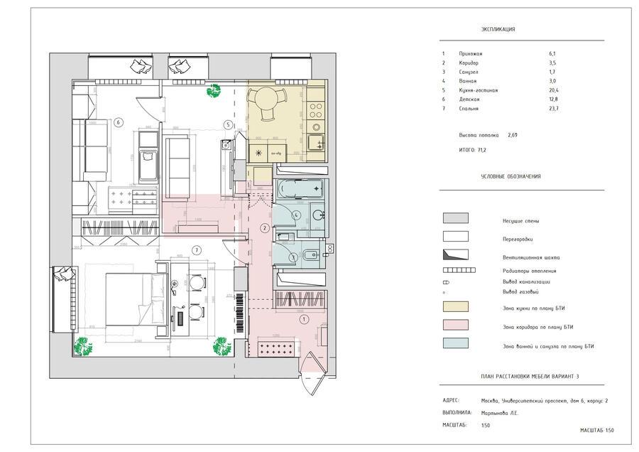 На основе обмерного плана были разработаны три варианта планировочных решений.