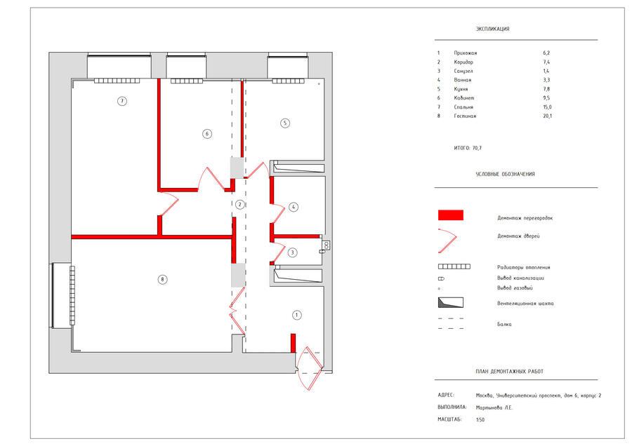 Адрес: г. Москва, Университетский проспект, д. 6к2, кв. 15 Год постройки: 1965