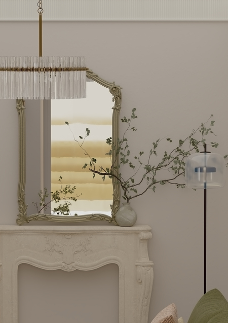 Светлая гостиная с диваном глубокого зеленого цвета и винтажными элементами декора создают чувство покоя и расслабления. Различные сценарии освещения — торшеры, бра, искусственные свечи помогают создать нужное настроение.