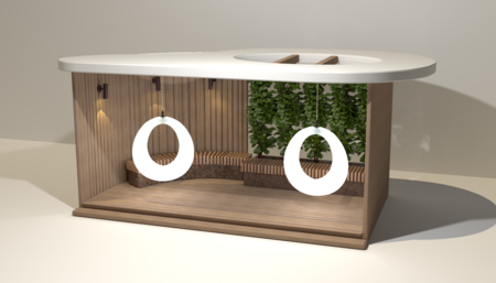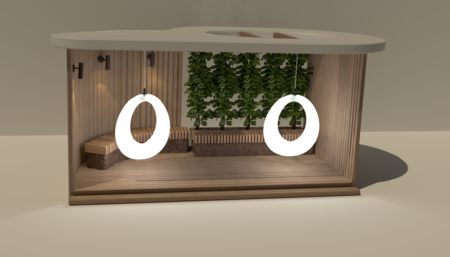 Также для того, чтобы парклет был максимально удобен и комфортен для всех потенциальных пользователей, в том числе и для молодых родителей, которые хотят отдохнуть, при этом заняв чем-то своего ребенка, я поместила внутрь парклета не только стандартные лавки, но и подсвечивающиеся качели-кольца, которыми могли бы пользоваться как дети, так и другие посетители Артплея.
