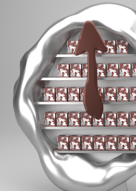 POS-материал для бренда какао пасты ГУЩА представляет из себя стеллаж в форме часов с вращающейся стрелкой. Несет в себе цель привлечь внимание покупателей к товару насчет необычного вида и идеи небольшого ритуала медитации в процессе выбора и, в последствии, приготовления напитка.