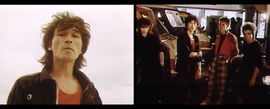 Внешне Цой предельно лаконичен: чёрная одежда, простая гитара, свет прожекторов, сцена, толпа. Но именно эта простота создаёт мощный визуальный образ. На фоне помпезных и пыльных фигур старшего поколения он выглядит человеком будущего — собранным, уверенным, настоящим. Свет и музыка работают на него: камера фиксирует каждое движение, взгляд, интонацию.