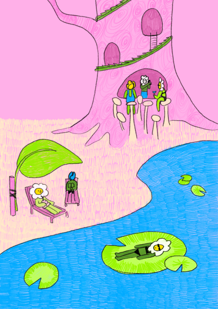 Серия комикс-плакатов о повседневной жизни цветочных крошек — маленьких существ, обитающих в волшебной долине.