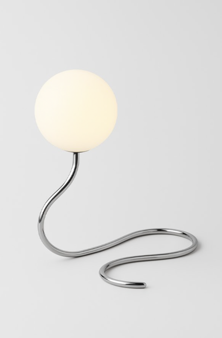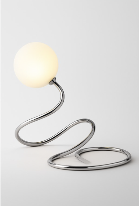 Основной конструкции служит гибкая хромированная лента, которую можно свободно изгибать и тем самым менять форму светильника — от плавной волны до спирали.