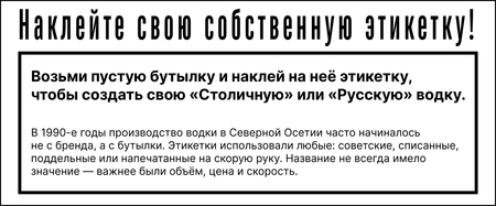 Это документальная выставка, которая рассказывает историю Северной Осетии 1990-х через призму водочного бума. Мы показываем артефакты и погружаем зрителя в атмосферу эпохи.