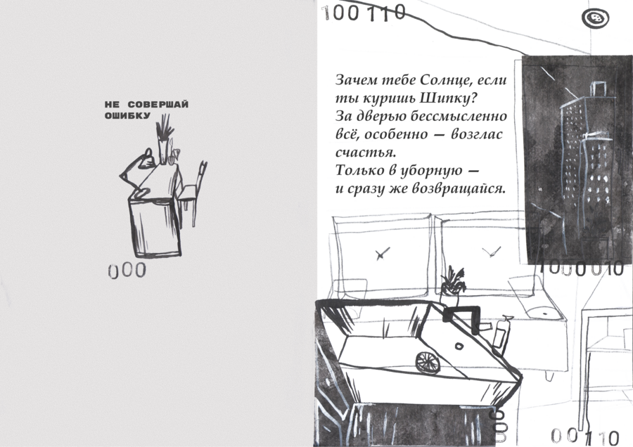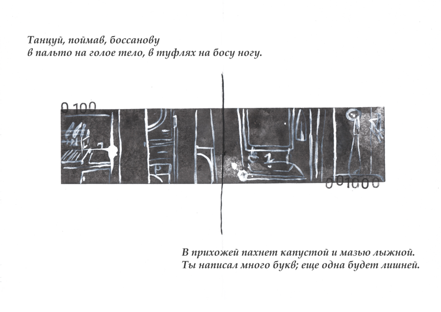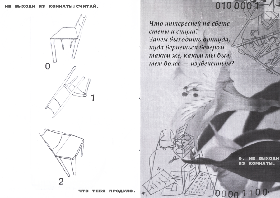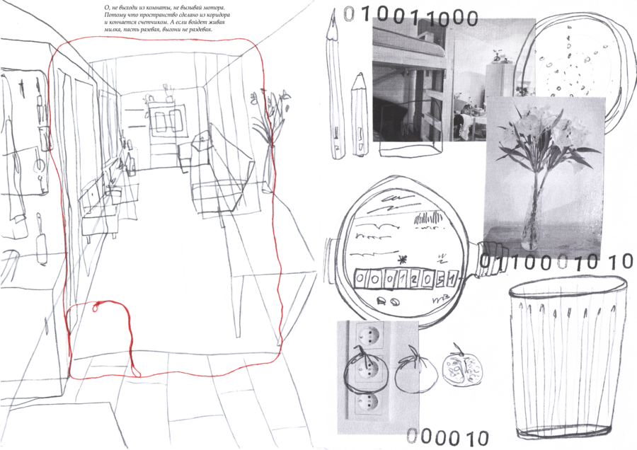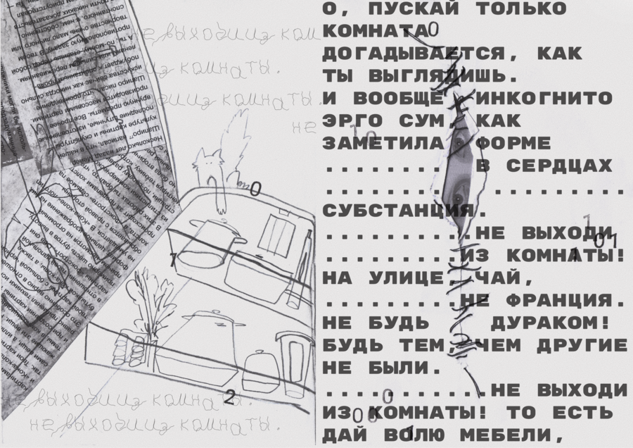 Зин отражает личное пространство через призму стихотворения «Не выходи из комнаты…» Иосифа Бродского.