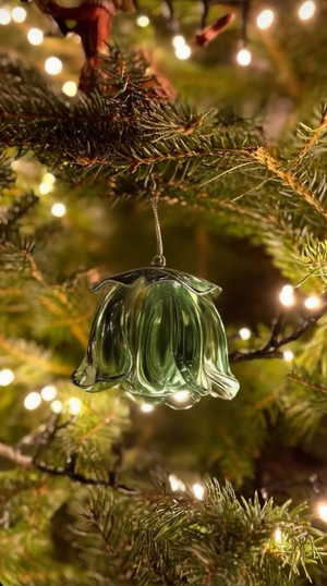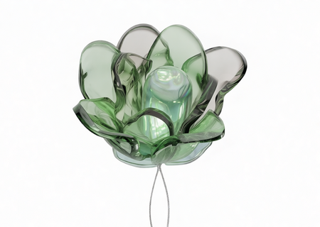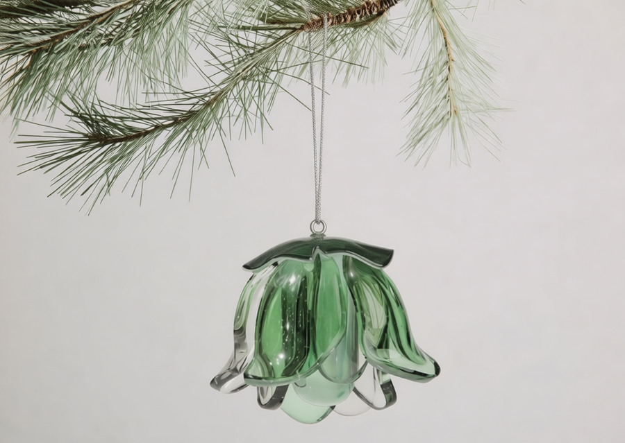 Моя новогодняя игрушка имеет форму зеленого стеклянного цветочка и отсылает на тему природы, которая прослеживается сквозь весь проект.