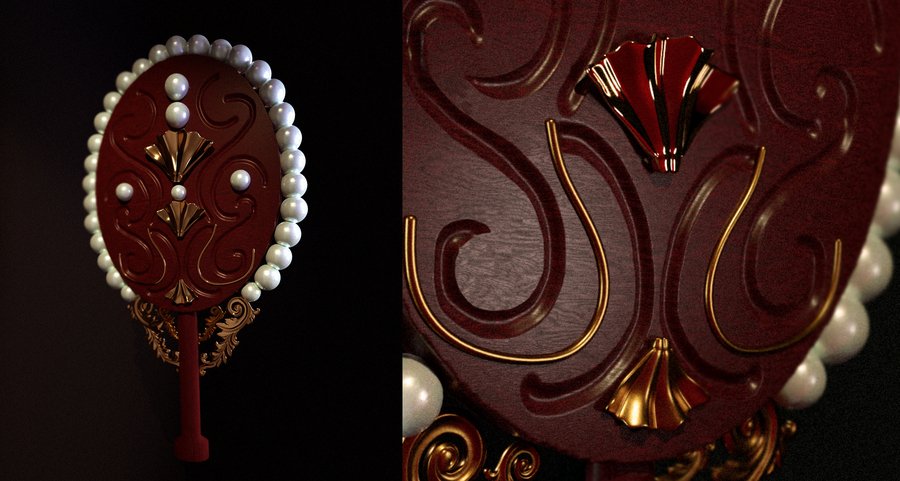 1 — вееры с нашивками, 2 — серьги, вдохновленные кокошником и традиционным головным убором пекинской оперы