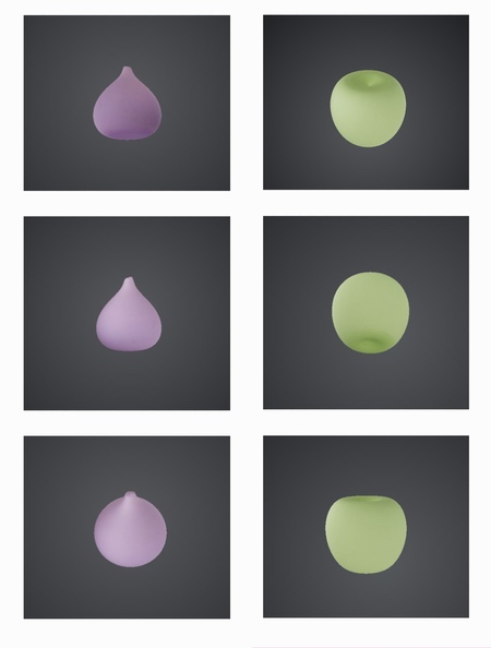 Простые и плавные формы, без текстуры, без реалистичных деталей. Поверхность матовая, гладкая, окрашивание однотонное, светлые приглушенные цвета: зеленый, фиолетовый красный, желтый, оранжевый. Прочность, не требует устойчивости к температуре, не требует многократного мытья, должен стоять на твердой поверхности.