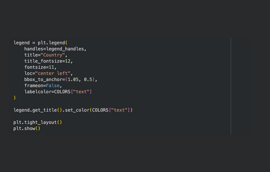 Подбор цветовой палитры осуществлялся с помощью сервиса Adobe Color, который позволил подобрать гармоничное сочетание оттенков и сохранить визуальное единство всех графиков. В палитре сочетаются холодные тёмные тона, обеспечивающие нейтральный фон, и более насыщенные цвета, применяемые для акцентов и визуального разделения данных. Такой подход помогает избежать визуальной перегрузки и делает графики читаемыми.