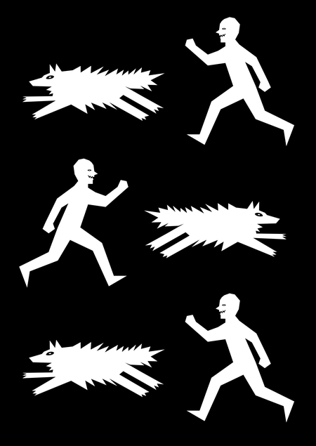 веб-плакат выступает как графический рассказ: он показывает превращение дикого оборотня в ухоженного клиента через поимку и стрижку в ночи.