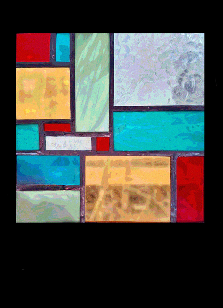 Такое название выбрано в связи с тем, что по стилю фонарик напоминает работы Пита Мондриана. Однако Мондриан не использовал зеленый цвет, считая его слишком натуральным. В моей работе зеленый, наоборот, выходит на первый план.