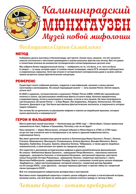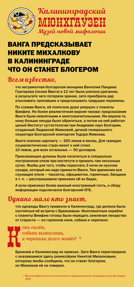 Полное название: «Калининградский Мюнхгаузен. Музей новой мифологии».