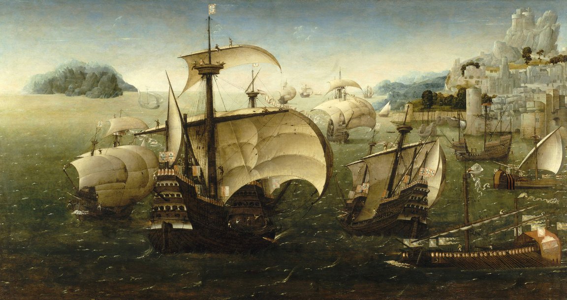 Portuguese Carracks off a Rocky Coast