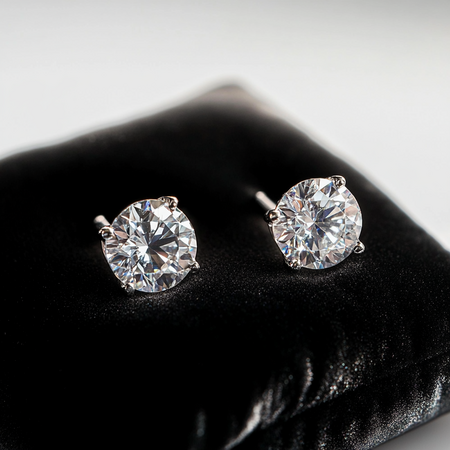 1.diamond earrings on a black velvet pillow on a white background 2.girl with diamond earrings on a white background, black and white photography
