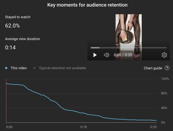 Ролик оказался довольно удачным — с 13 по 18 июня он собрал 976 просмотров и 2 лайка. Целых 62% людей остались смотреть видео и 38% проскроллили. Из этого можно сделать вывод, что: