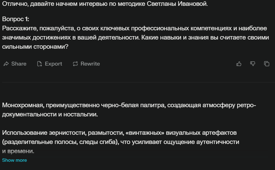 Промпт для perplexity: «Я хочу создать личный бренд. Для этого мне надо понять свои сильные и слабые стороны. Проведи для меня интервью по компенсациям на основе методики Светланы Ивановой. Эта методика (известная в сфере оценки личного потенциала и компенсационных ожиданий) включает следующие ключевые элементы:.......»