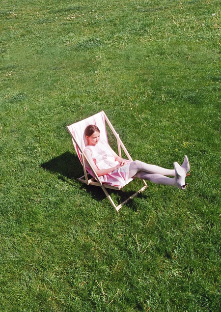 Конструкция шезлонга перенесена на все предметы одежды коллекции, однако образов, сочетающих в себе функционал как мебельного объекта, так и одежды, несколько, в остальных объектах ради разнообразия композиции и повышения пользовательского комфорта был оставлен лишь намёк на шезлонг.