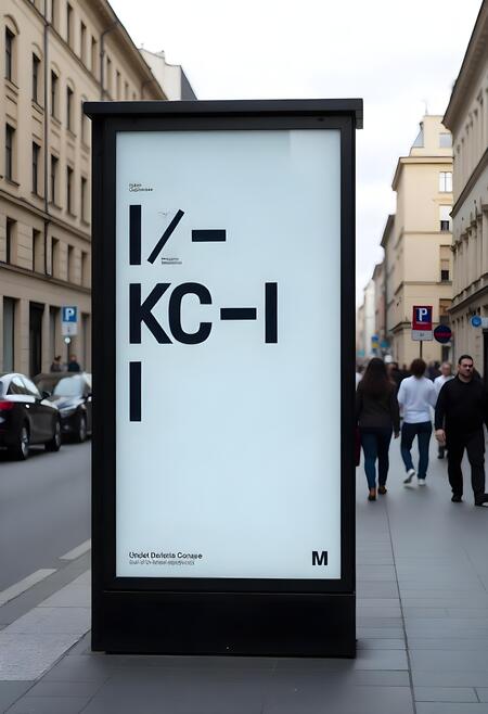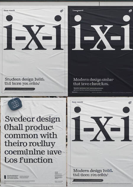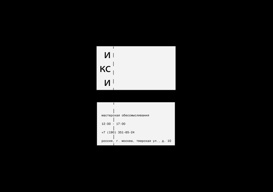 Promotional materials (banners, posters) for modern design sudio with the inscription «и-кс-и» producing common objects which lost their function. With a minimalist design featuring typographic high quality sweden design grotesk helvetica like font. The color scheme of the posters is neutral black and white, with dark blue acents on the main words. Banners and posters are located in busy streets.