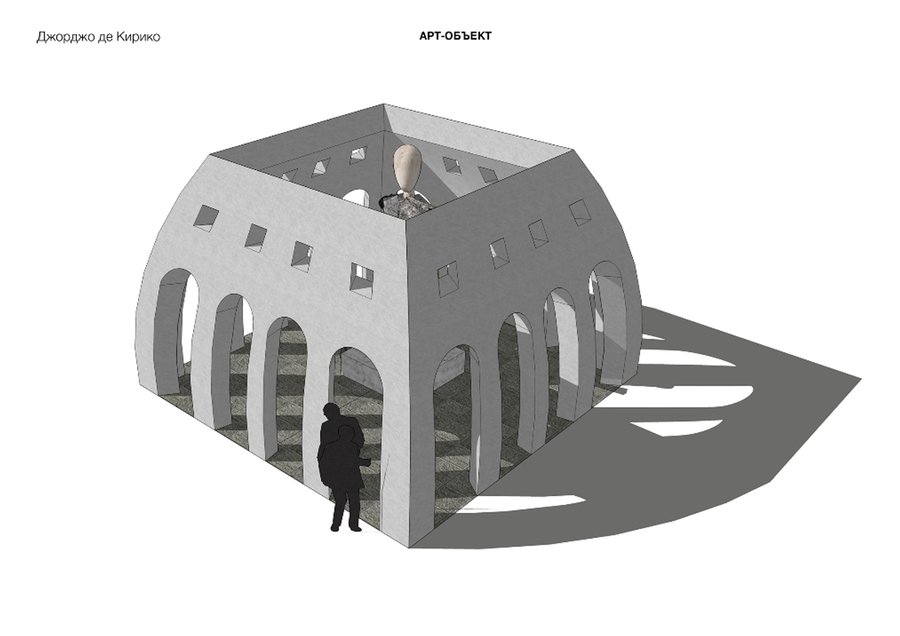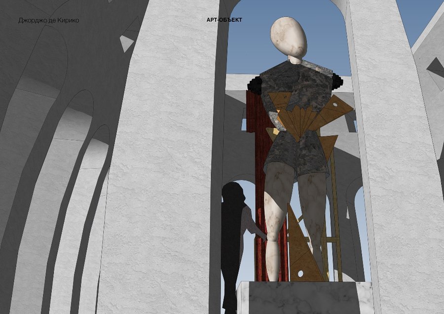 Оригинальный проект был посвящен созданию арт-объекта по мотивам итальянского художника Джорджо де Кирико и фирменного стиля к нему. Исходя из этих данных, вдохновением для бизнес стартапа послужила возможность создать айдентику для нового выставочного пространства имени Джорджо де Кирико.