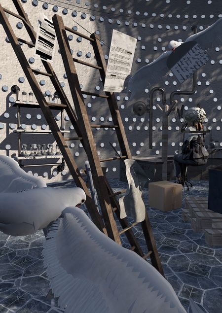 Услуги голубиной почты со временем начали терять популярность — требовалась большая скорость пересылки, увеличились расстояния и количество писем. В опустевшей голубиной башне прошла выставка, работы в которой — кинетические инсталляции — состояли из бытовых механизмов, предметов. Опираясь на принципы их движения, работники перестроили здание, соединив голубиную почту с пневматической.