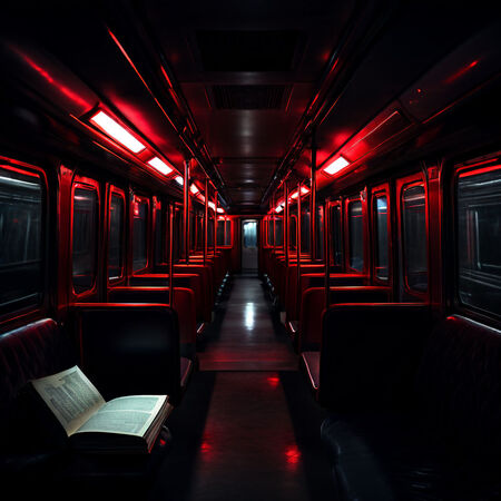 В работе с эстетикой я использовала Playground AI. 1. «subway car, red dim lighting, dark, no people, empty, first-person view, book, technical instructions in the book.»