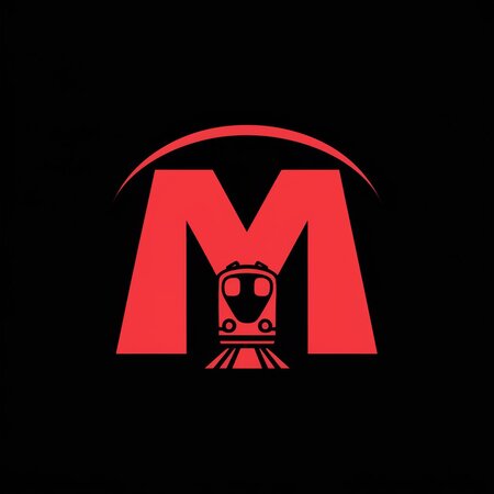 Логотип создан с помощью ideogram по промпту: «Metro logo, horror theme, minimalism, colors #800000 #FF0000 #000000, only red and black, a large letter M is depicted, under the letter is a train, empty black background»