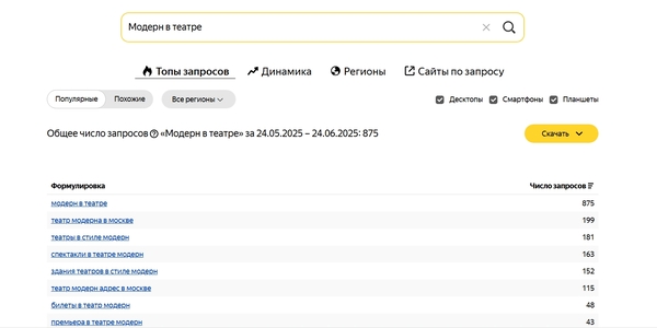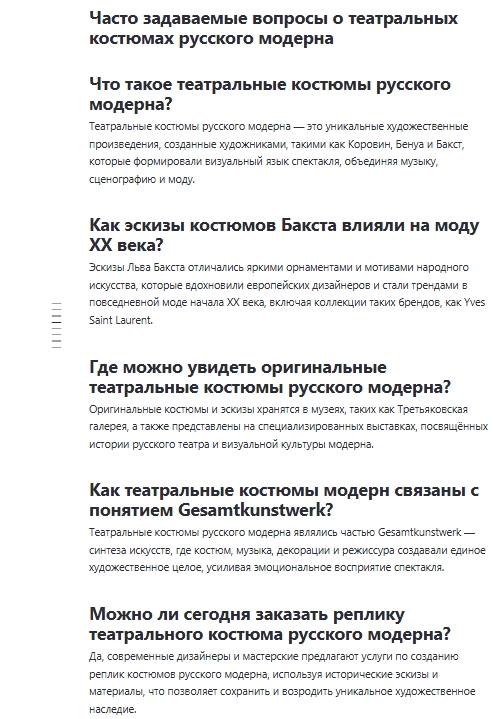 Промпт: «Сгенерируй 5 SEO-оптимизированных заголовков для статьи на тему 'Театральные костюмы эпохи русского модерна', учитывая ключевые слова: [театральный костюм, русский модерн, эскизы костюмов, мода XX века].»