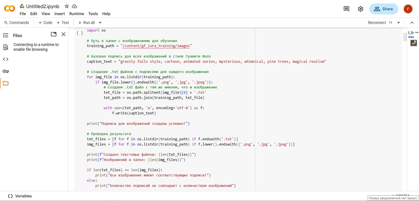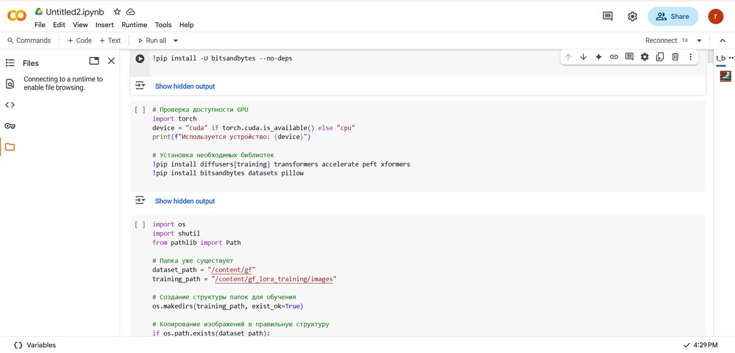 В проекте также использовались следующие ИИ: Perplexity AI для решения проблем совместимости библиотек, доработки кода и оптимизации параметров обучения LoRA модели, улучшения и генерации промптов. Gemini прямо в Collab для исправления синтаксических ошибок и решения технических проблем
