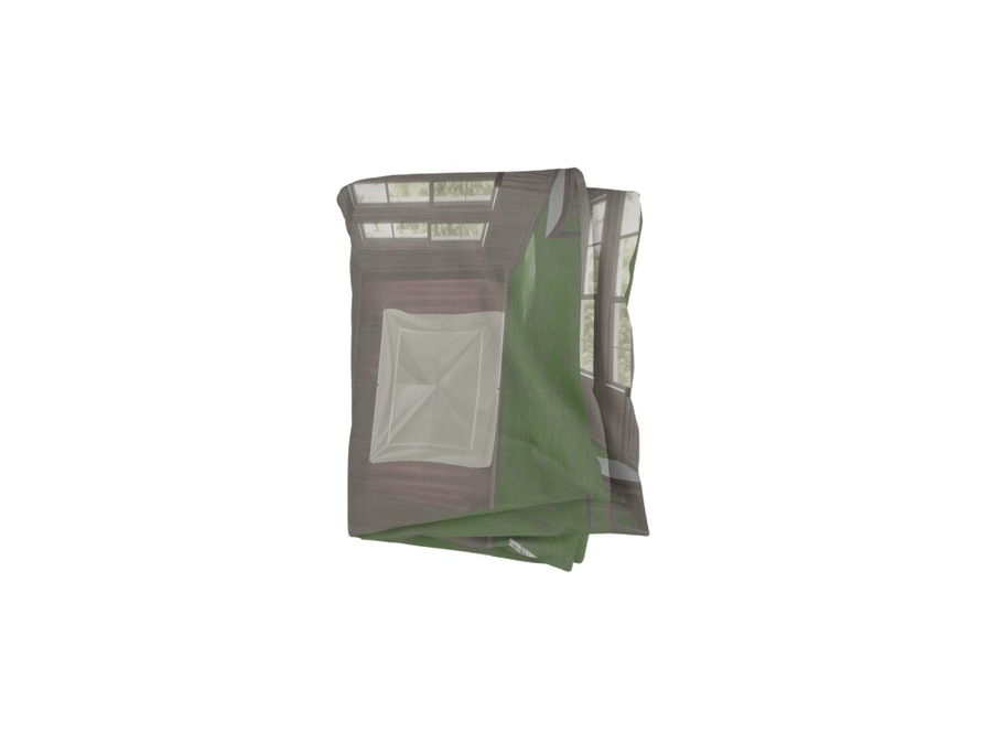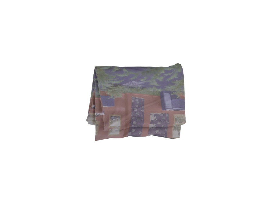 Print on a silk handkerchief in green pastel colors and liminal space atmosphere