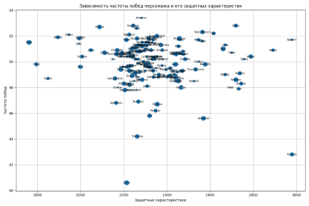 Вторая теория игроков, которую я решил проверить — персонажи с большим количеством здоровья и защиты выигрывают чаще