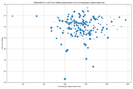 С уроном же данное значение выражено сильнее — персонажи с более чем 140 ед. урона имеют стабильно высокую частоту побед