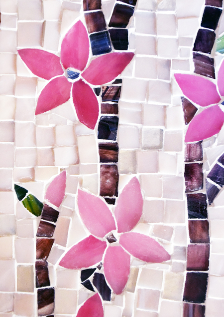 Следующая мозаика выполнена из стекла бежевого и розового оттенков, чтобы передать атмосферу весны.