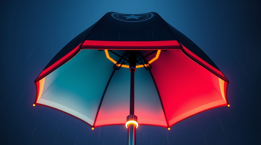 leonardo: A futuristic umbrella inspired by the visual metaphor of planetary clocks and natural weather cycles. The canopy of the umbrella features a sleek, dark background in deep navy blue.