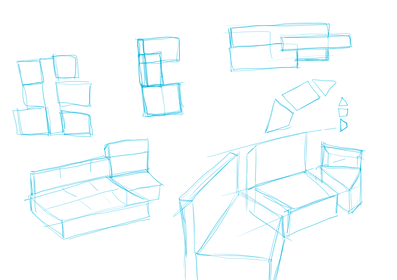 Коллекция мебели для гостиной «Tris» вдохновлена всем известной игрой тетрис. Модульная система коллекции представляет собой блоки самой игры.
