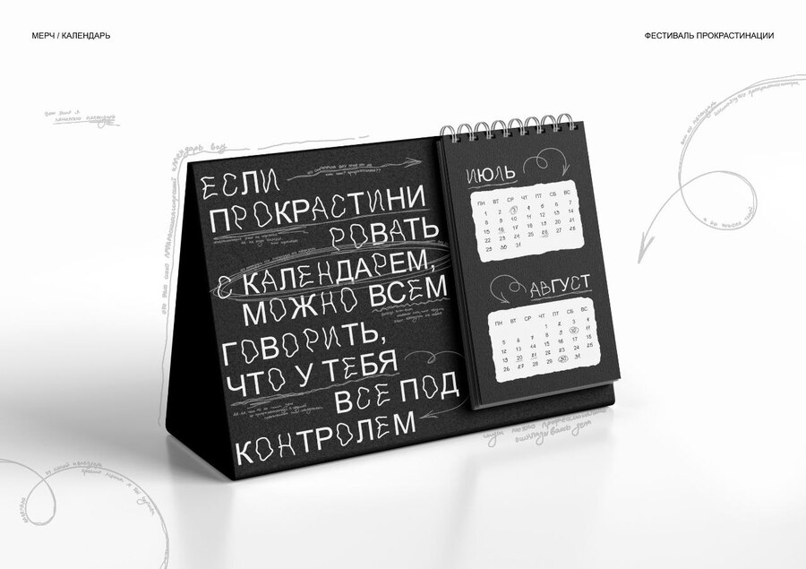 По задумке фестиваль приурочен к выходу книги о методах и техниках борьбы с прокрастинацией. По этой причине именно она является продуктом, однако особое внимание уделялось генерации пространства, поскольку оно является ключевой составляющей любого фестиваля.