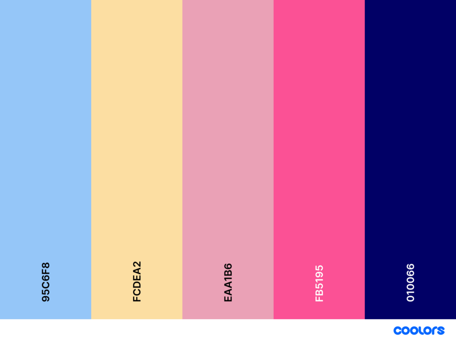 Промт: Pallet of geometry figures in crimson, light blue, pink, navy and yellow colors.