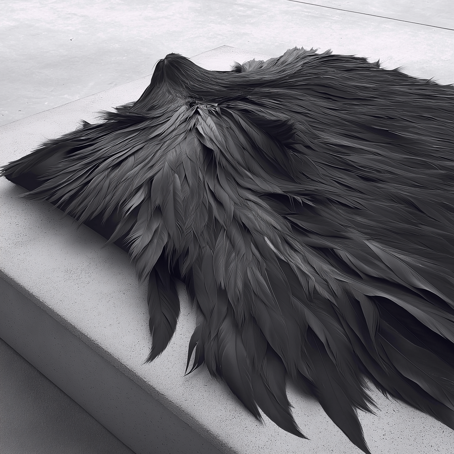 В рамках студенческого проекта «ДНК бренда» я создавала одежду в стиле Ann Demeulemeester. Я решила переосмыслить сделанные образы, превратив в стартап — собственный бренд. Основная цветовая гамма была выбрана ввиду своей востребованности, а так же личных предпочтений автора. Merger — бренд одежды и аксессуаров из черных перьев. Визуализация выполнена с помощью нейросети.