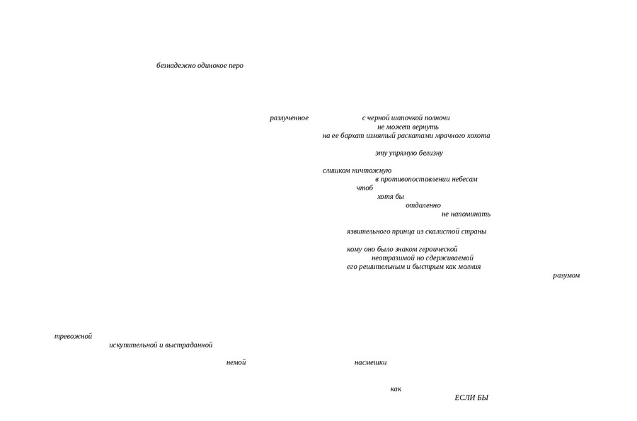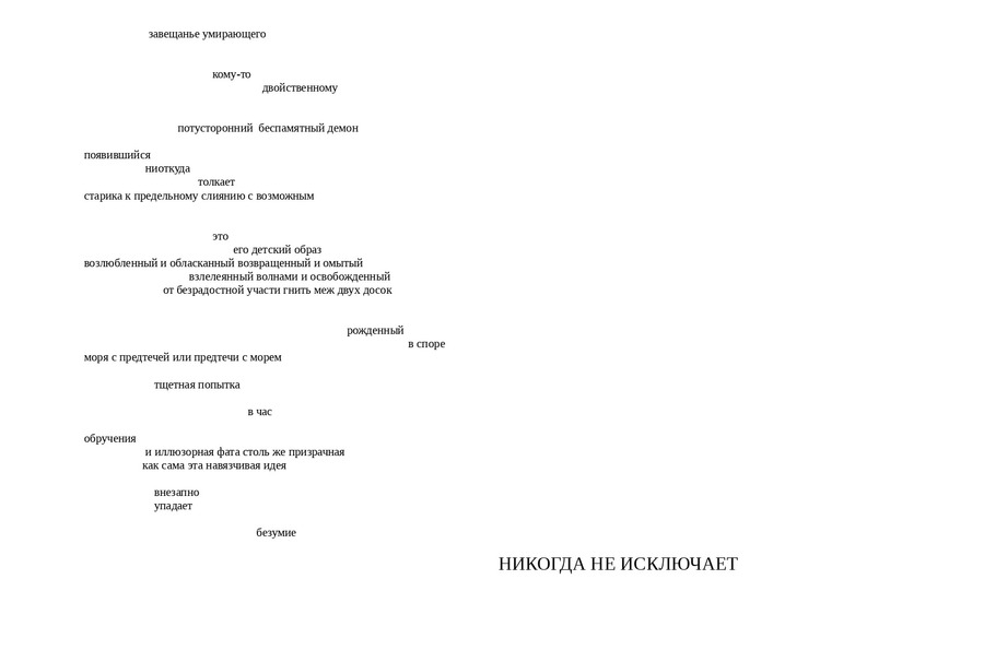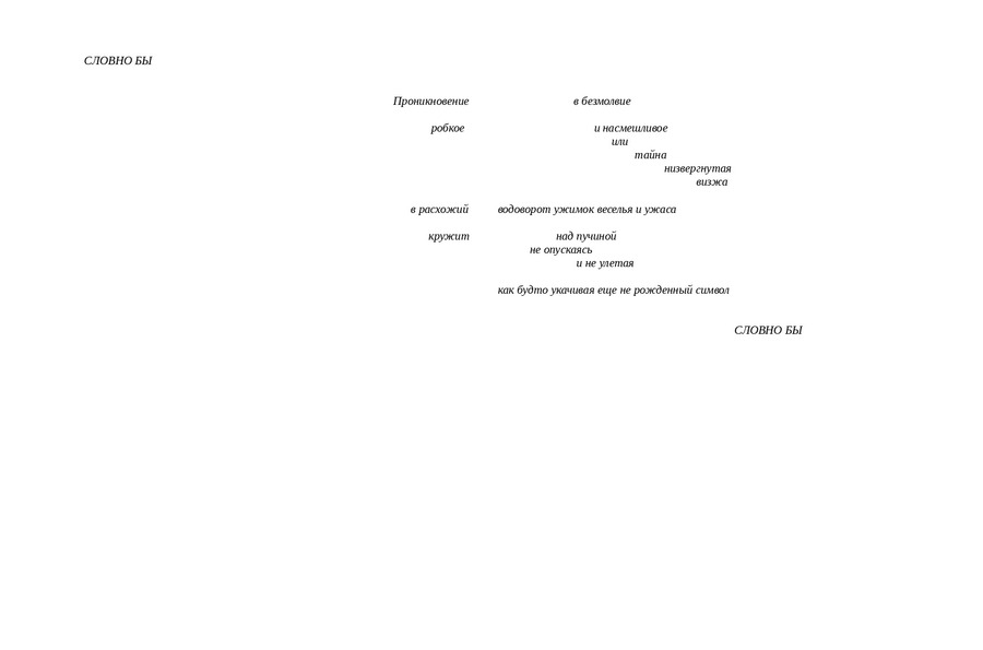 В моей работе визуальная поэзия представляется феноменом совершенно неопределенным, — а не доминирующе литературным или синтетическим, каким нарекает его термин.