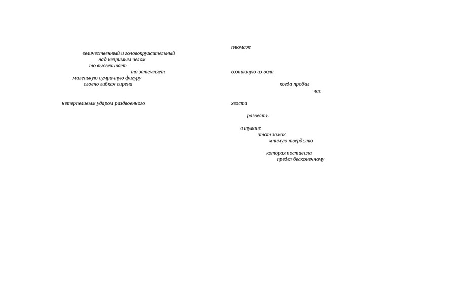 Примером перераспределения слов на поверхности листа в новой иерархии, помимо Малларме, служит также поэма Е. Мнацакановой «Das Buch Sabeth» или «Книга Елизаветы» 1972–1988 гг.